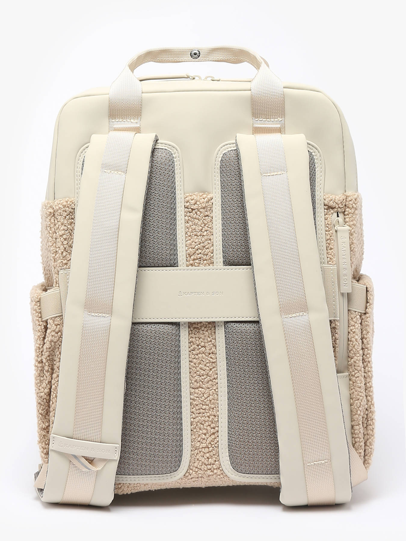The KAPTEN AND SON backpack, made from recycled polyester, is a modern and eco-friendly model. Ideal for those aged 11 and up, it combines style and functionality. On the outside, it features one front pocket, two side pockets, and one back pocket, all secured with zippers for easy and safe access to your belongings. The adjustable straps provide optimal comfort whether you carry it by hand or on your back. Inside, you'll find a spacious compartment to organize your essentials, with three simple pockets, one zippered pocket, and space for a 15"" laptop for added convenience. This backpack is perfect for school, outings, or travel, offering both trendy design and everyday practicality.