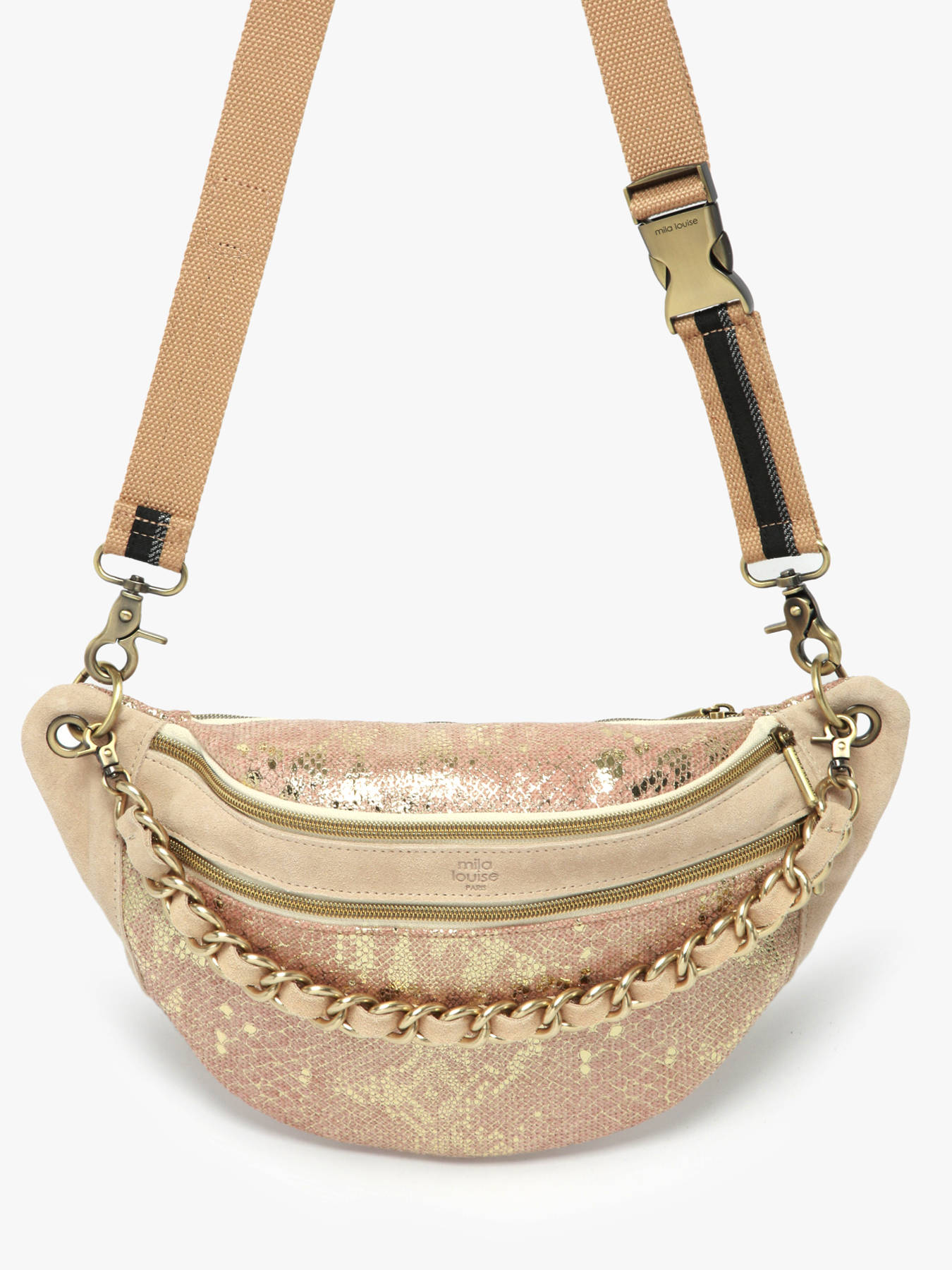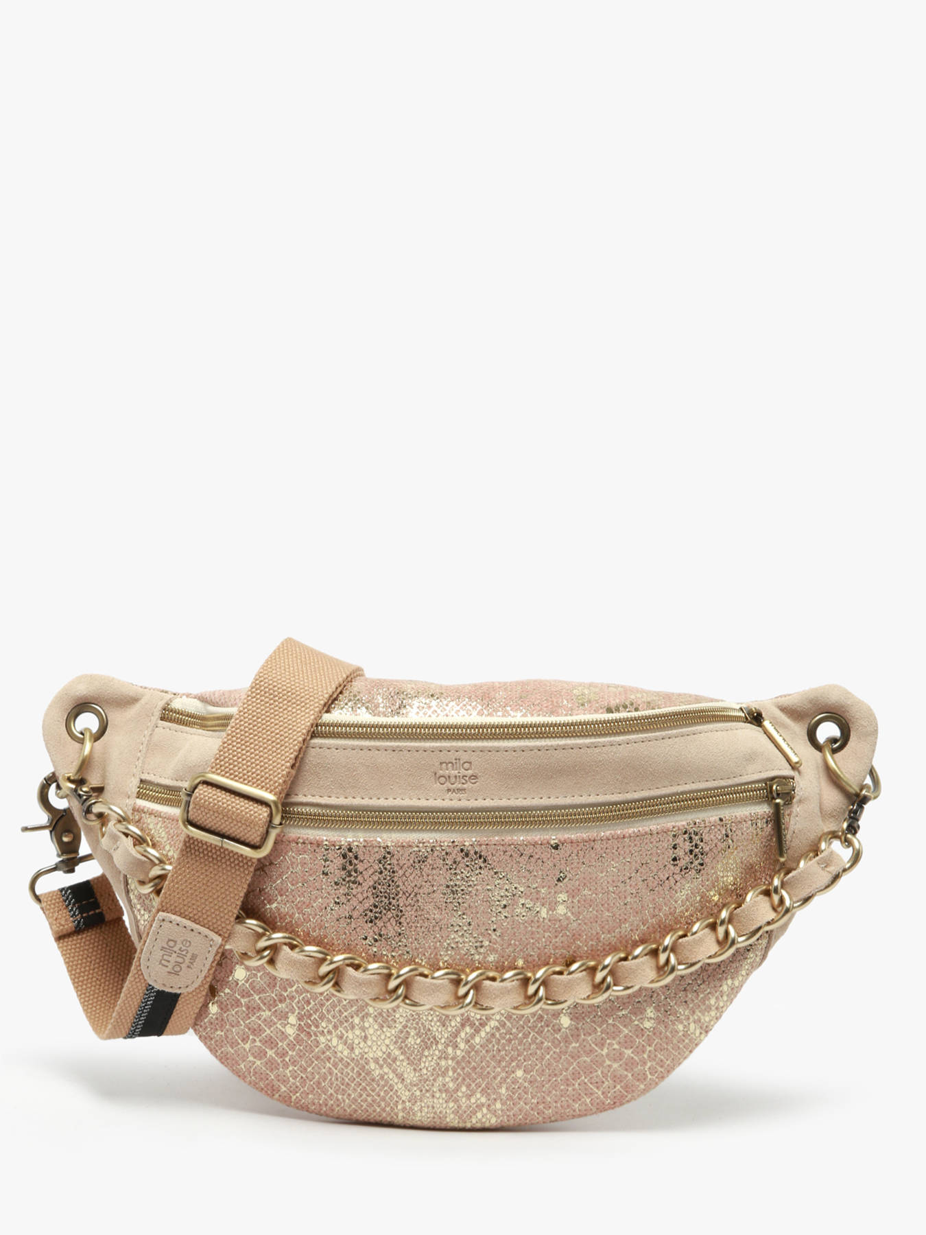The MILA LOUISE fanny pack in fabric is the perfect accessory for a casual and practical style. It features a secure zip closure, along with a front pocket and a back pocket for quick access to your small items. The adjustable and removable shoulder strap allows you to wear it comfortably across your chest, offering great freedom of movement while keeping your hands free. Inside, it has a single compartment, ideal for organizing your essentials. Lightweight, practical, and modern, this fanny pack is perfect for your urban outings or daily activities.