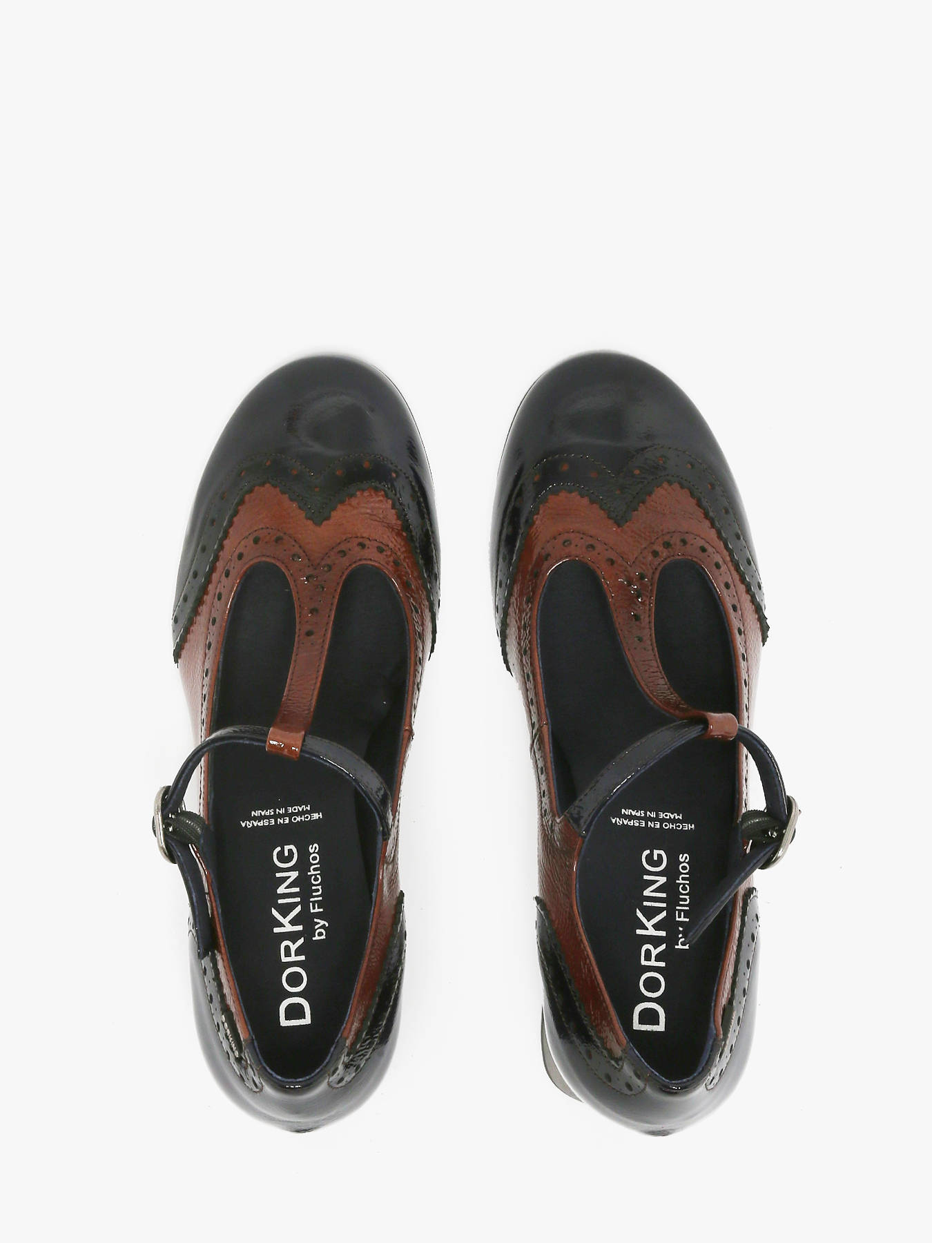 The DACY heeled derby shoes by DORKING combine elegance and modernity with their refined two-tone design and patent leather finish. Their 6 cm block heel provides a stable and comfortable stride while adding a feminine and sophisticated touch. The textile lining ensures softness and breathability for optimal comfort throughout the day, while the textile insole enhances overall well-being. The buckle closure allows for a precise fit. Versatile, they pair equally well with professional outfits or more casual looks, making this model a chic and practical wardrobe essential.