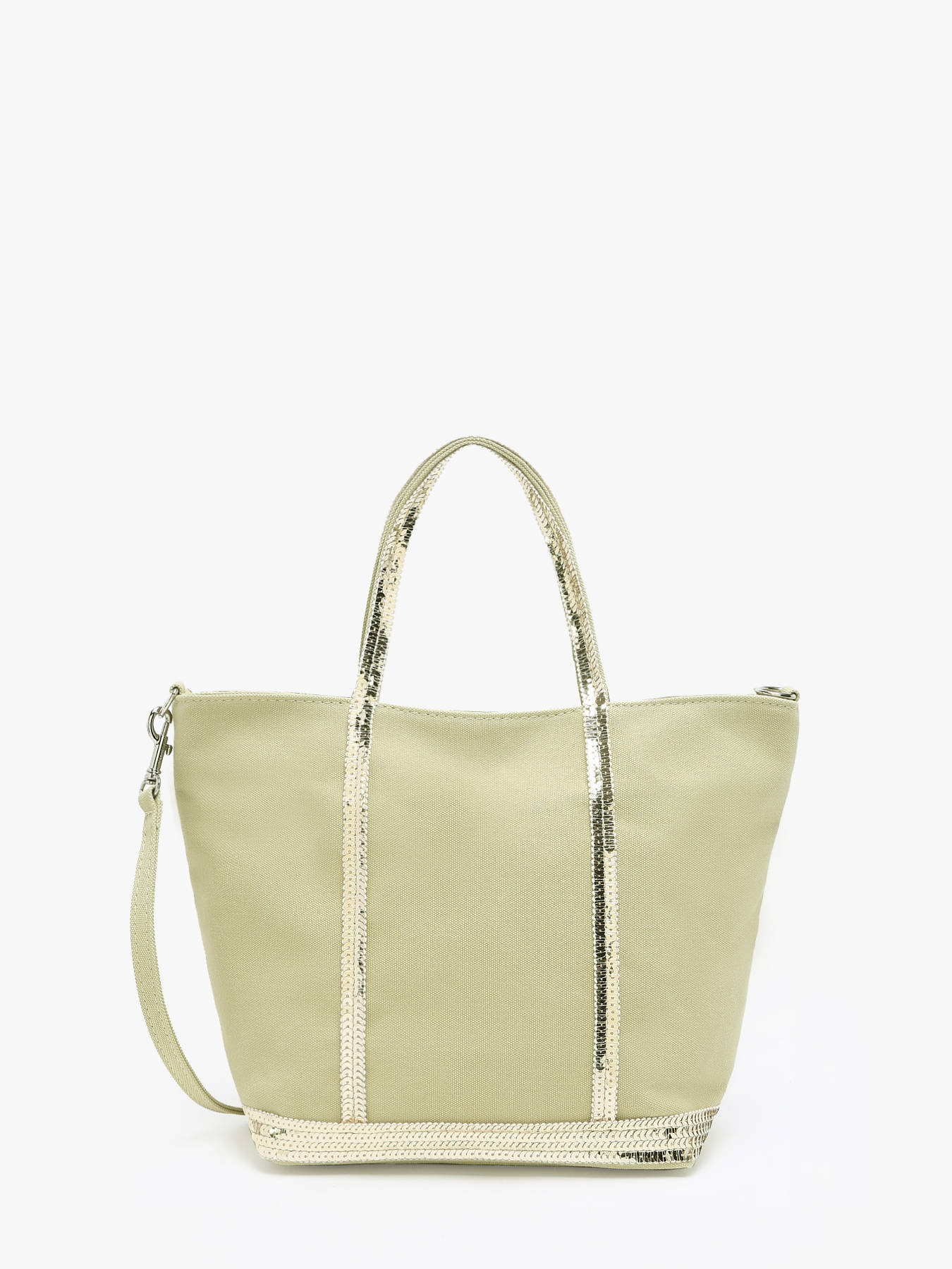On adore ce sac à main Le Cabas signé Vanessa Bruno. Il est confectionné dans une toile de coton surmonté de paillettes, fabriqué en France dans les ateliers Vanessa Bruno près de Paris. Il s'agit d'une nouvelle taille de cabas, encore plus pratique et légère. Ces dimensions réduites ne vous permettront pas d'inclure beaucoup d'objets inutiles. Ce petit sac à main dispose de deux anses courtes et une bandoulière amovible pour un porté épaule ou croisé.