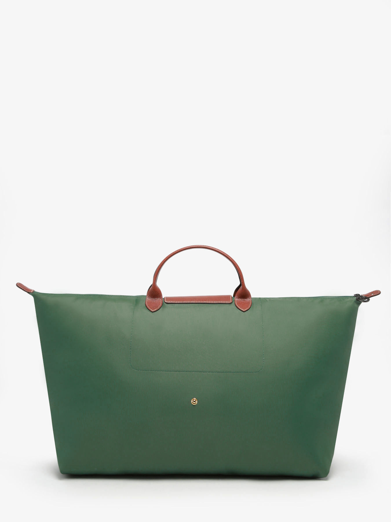 Fermez ce sac de voyage Le Pliage Longchamp à l'aide d'un zip ainsi que d'un rabat à pression et portez-le à la main.
