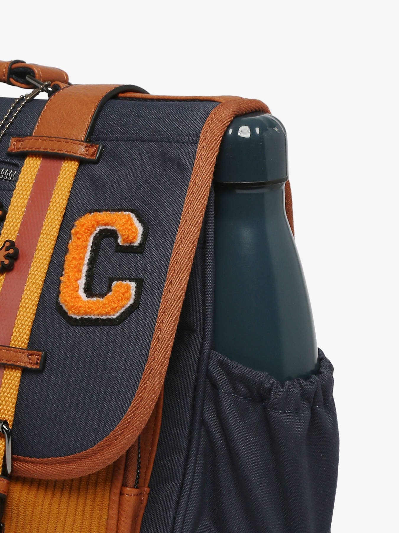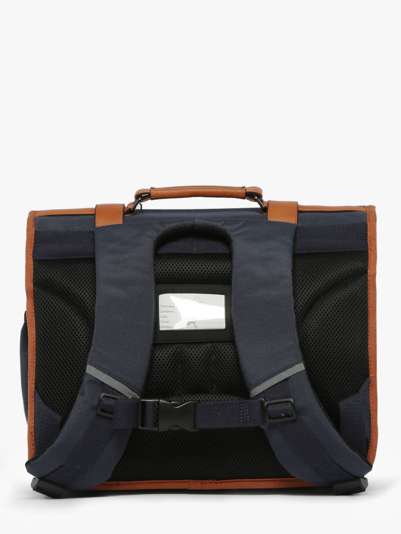 38 cm - 18 liters - 1.07 kg ~ 15-inch Satchel from the brand Cameleon, Vintage collection. Perfect for primary school, it is divided in two parts where you can put different documents and has a little zipped pocket. Very useful thanks to its two front zipped pockets -which can hold a snack for example ; and its nametag on the back. The bottom of the satchel is reinforced to improve its resistance and reflective straps have been placed all around on the bag. Specially made for the comfort of your child, the back and the straps are padded.