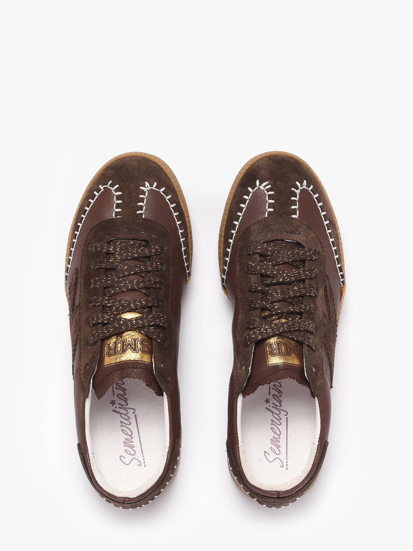 Apportez une touche tendance et élégante à vos tenues avec les sneakers ZADIK de la marque SEMERDJIAN. Leur dessus en cuir à finition lisse et daim combine style et qualité, tandis que les coutures blanches visibles décorent subtilement la chaussure, créant un look unique et moderne. Le logo latéral souligne l’identité de la marque, et les lacets agrémentés de fils dorés ajoutent une note sophistiquée et originale. La doublure en synthétique et cuir garantit confort et respirabilité, et la semelle intérieure en cuir, amovible, permet un ajustement personnalisé pour un confort optimal tout au long de la journée. La fermeture à lacets assure un maintien précis et sécurisé. Polyvalentes et stylées, ces sneakers SEMERDJIAN se marient facilement avec jeans, pantalons ou tenues casual, devenant rapidement un indispensable de votre garde-robe.
